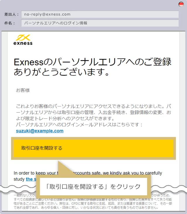 Exness(エクスネス)にご登録のメールアドレス宛に