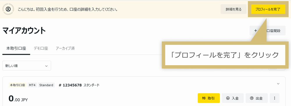 Exness(エクスネス)では、本取引口座(リアル口座)の開設完了後、