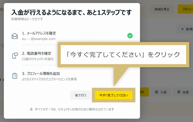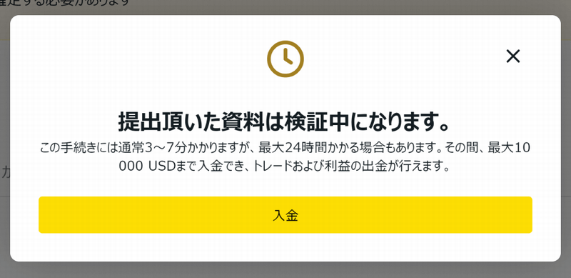 これより、Exnessにて承認手続きを行います。承認手続き完了までの時間は、3分から24時間程度です。