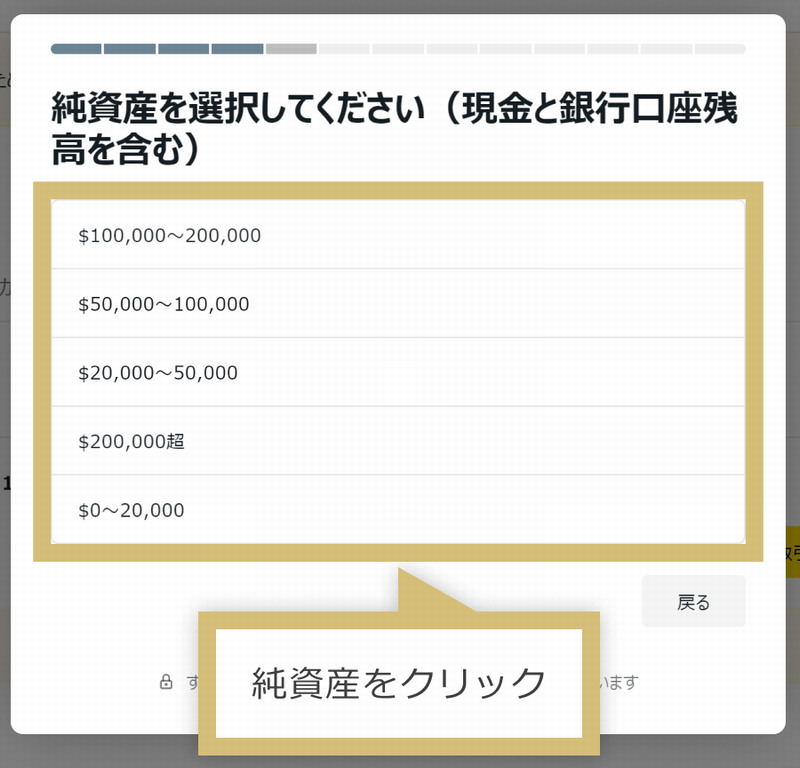 お客様の全ての財産を米ドルに換算し、純資産額を選択してください。