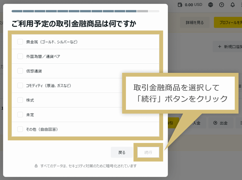 「ご利用予定の取引金融商品は何ですか」の画面が表示されましたら、